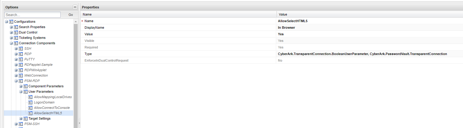 CyberArk.TransparentConnection.BooleanUserParameter, CyberArk.PasswordVault.TransparentConnection
